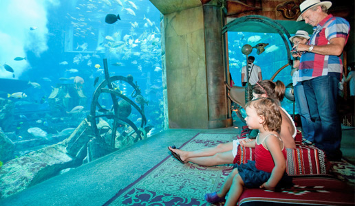 Территория Атлантиса огромна, сам отель тоже большой и роскошный. Сюда приезжает много семей с детьми. Для ребятишек есть бассейны, детские аттракционы в аквапарке, детский клуб, возможность посещения дельфинария и, наконец, океанариумы - и взрослым-то интересно, что уж говорить о ребятне.