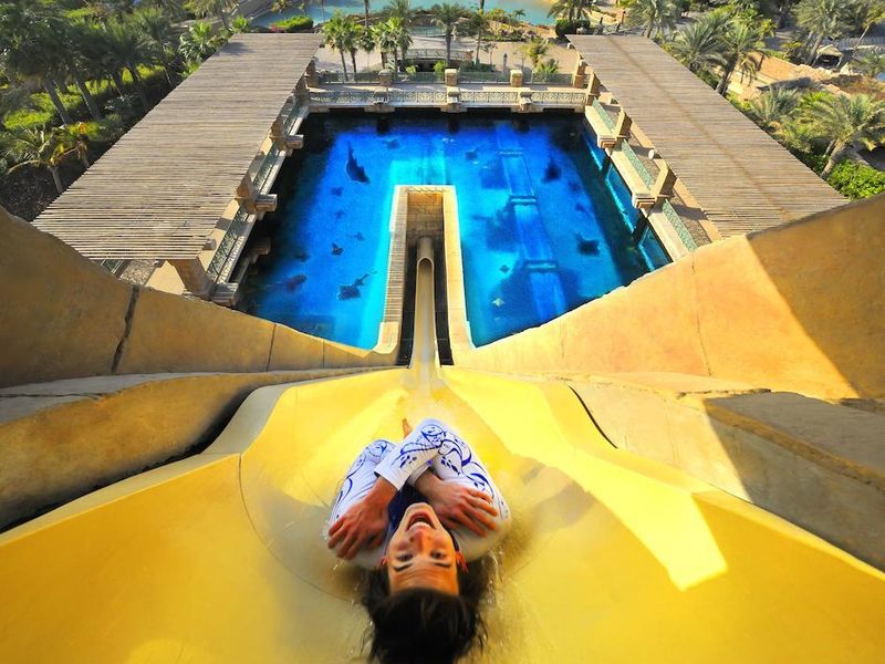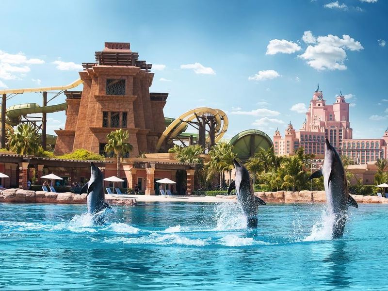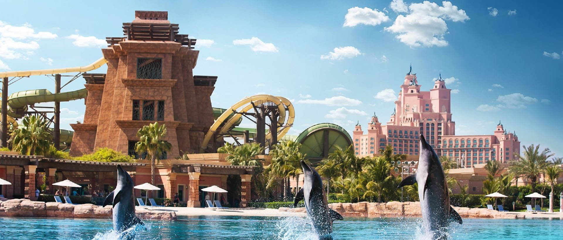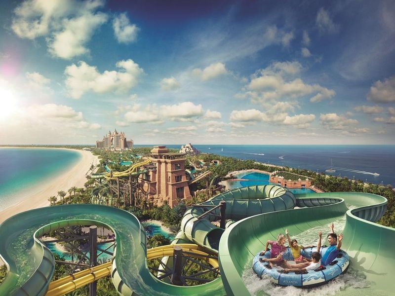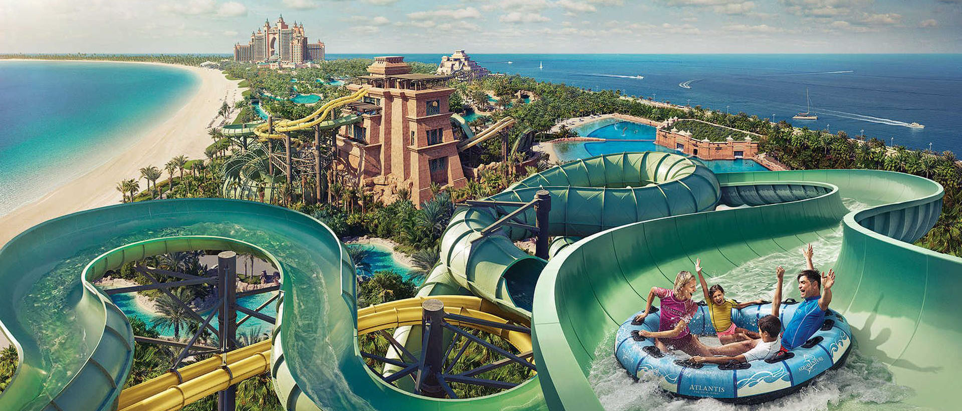 Воплощение мифов и легенд Атлантиды, царство здоровья, развлечений и радости для взрослых и детей раскинулось на площади в 45,73 га. Из них 17 отданы под великолепный парк водных развлечений Aquaventure, с его захватывающими дух водными горками, 2-километровой ленивой рекой, которая периодически превращается в бурный поток, бассейном с огромными волнами и просторными соляриями.