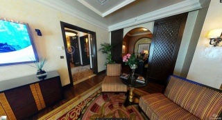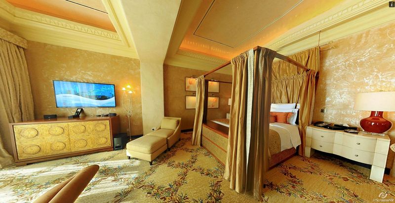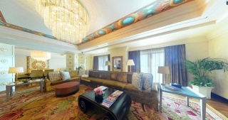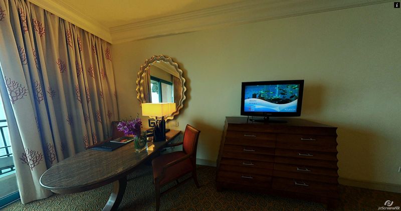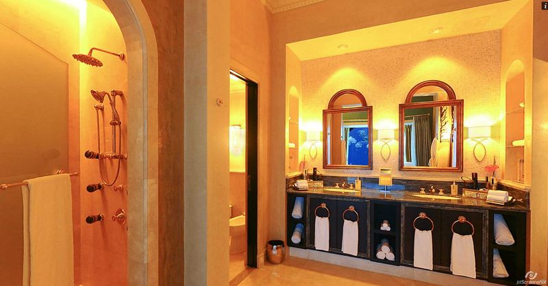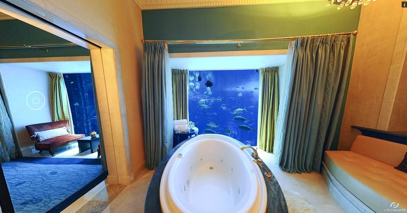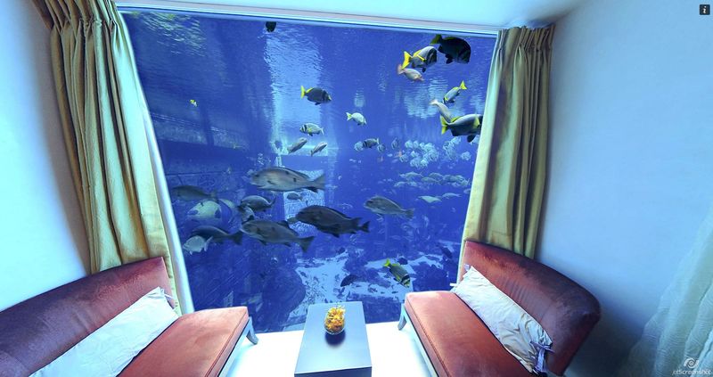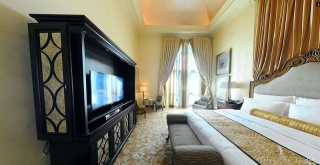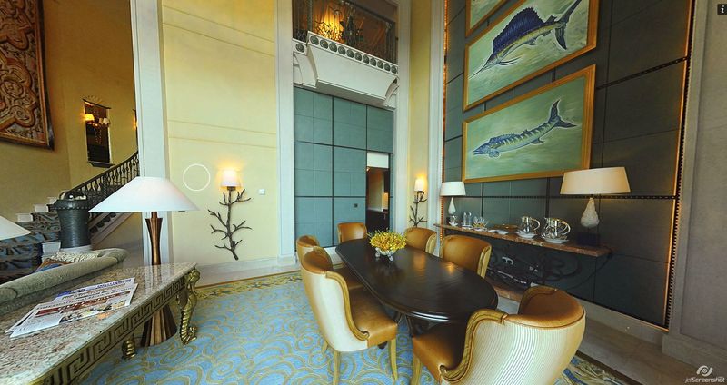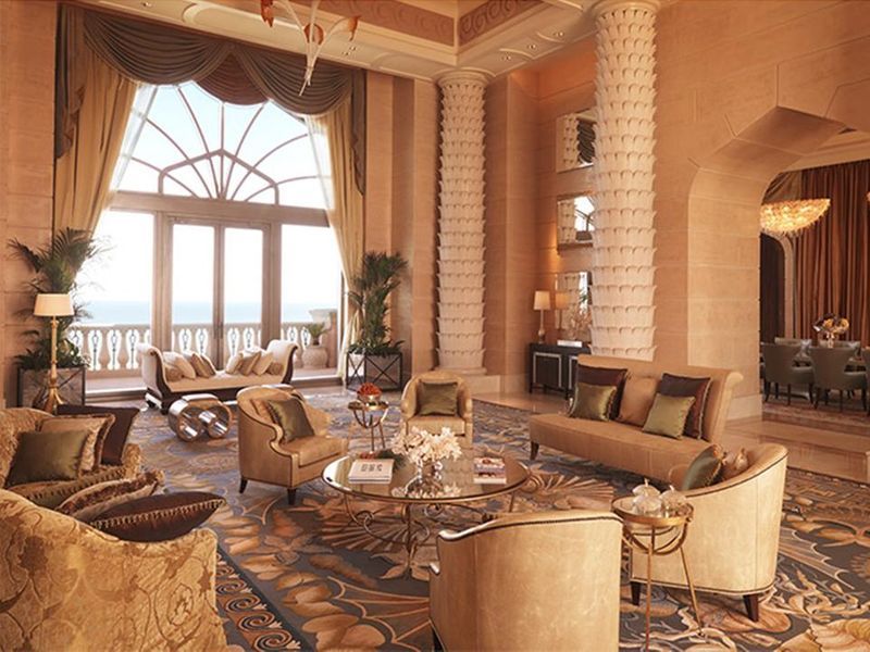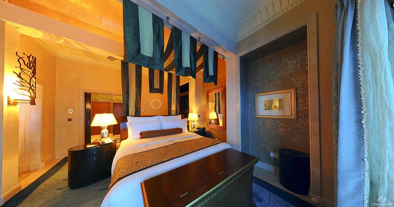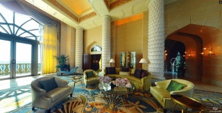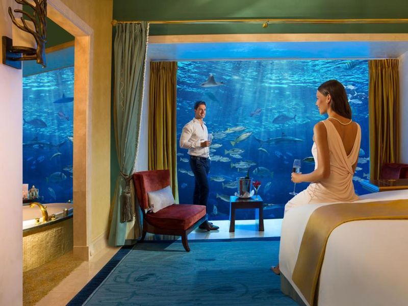 Внутри Atlantis The Palm Jumeirah всё богато и радует взор. Потолки расписные, лепнина, цветочные композиции, в огромных океанариумах плавают сотни рыб. Есть номера (Poseidon и Neptun Suite), где вместо стены - стекло, за которым плавают рыбы и прочие морские обитатели. Номера в отеле просторные, чистые, красиво оформленные.