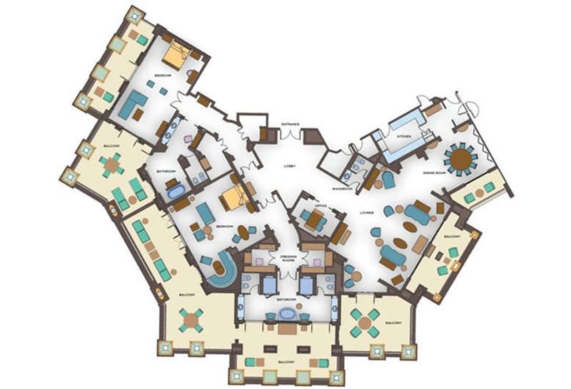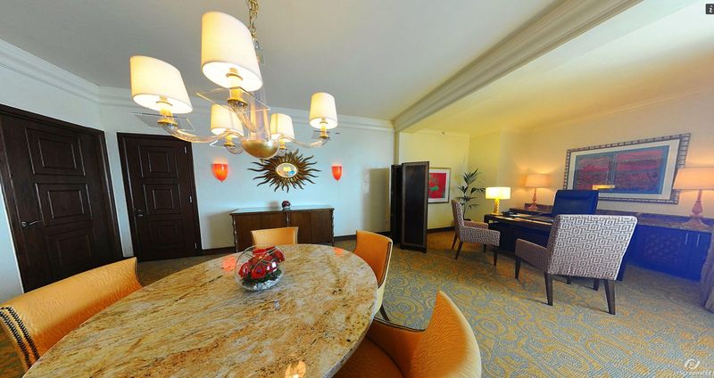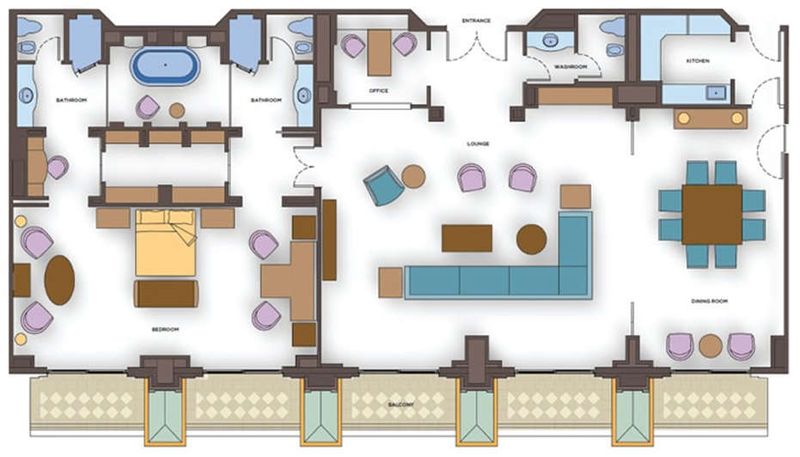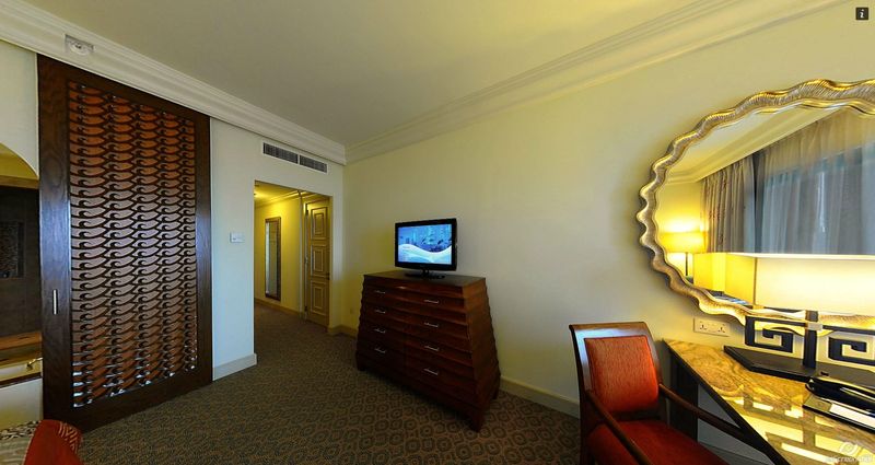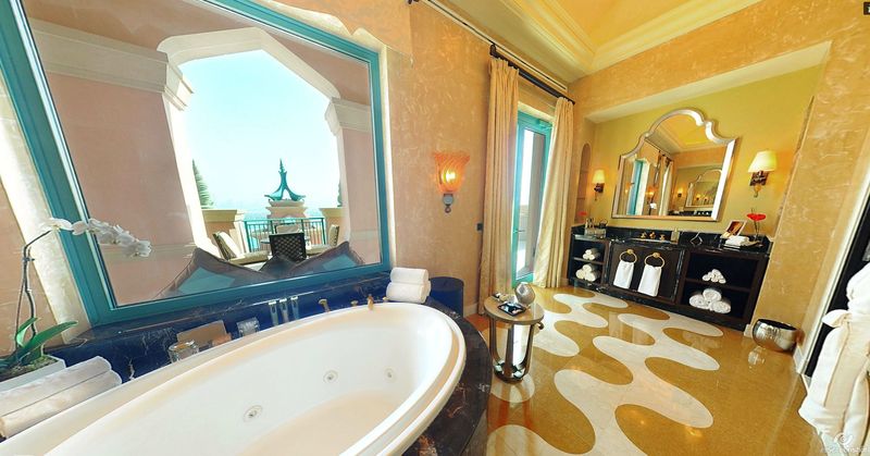 Из некоторых номеров (terrace suite) можно выйти на большую террасу, откуда открывается панорама острова Пальма Джумейра. В некоторых номерах в центре ванной комнаты установлена просторная гидромассажная ванна.
