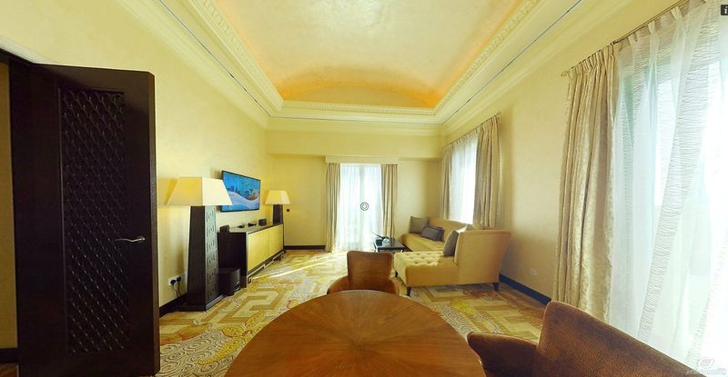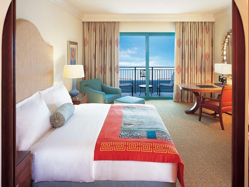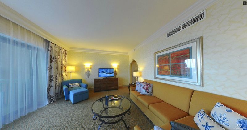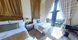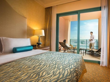 Номера с видом на Персидский залив, остров Пальма Джумейра или аквапарк Aquaventure. Спальня, гостиная зона, кровать king-size (с полноценным балконом) или 2 queen-size beds (c французским балконом).