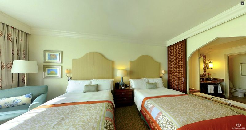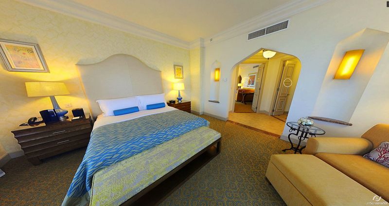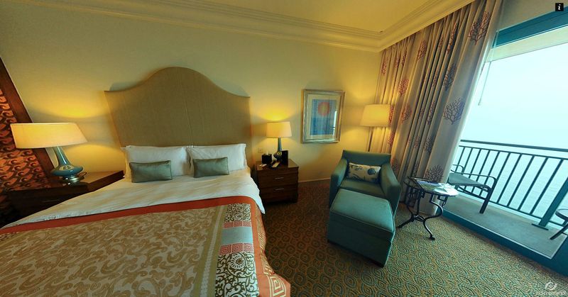 Все номера отеля Atlantis The Palm Jumeirah площадью не менее 45 кв м, оформлены в современном арабском стиле, с морской тематикой. В каждом номере есть или полноценный, или французский балкон, с которого открываются живописные виды на территорию отеля, или на Персидский залив, или на Пальму Джумейра (в зависимости от типа номера).