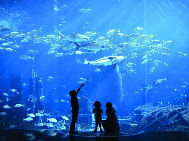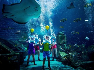Территория Атлантиса огромна, сам отель тоже большой и роскошный. Сюда приезжает много семей с детьми. Для ребятишек есть бассейны, детские аттракционы в аквапарке, детский клуб, возможность посещения дельфинария и, наконец, океанариумы - и взрослым-то интересно, что уж говорить о ребятне.