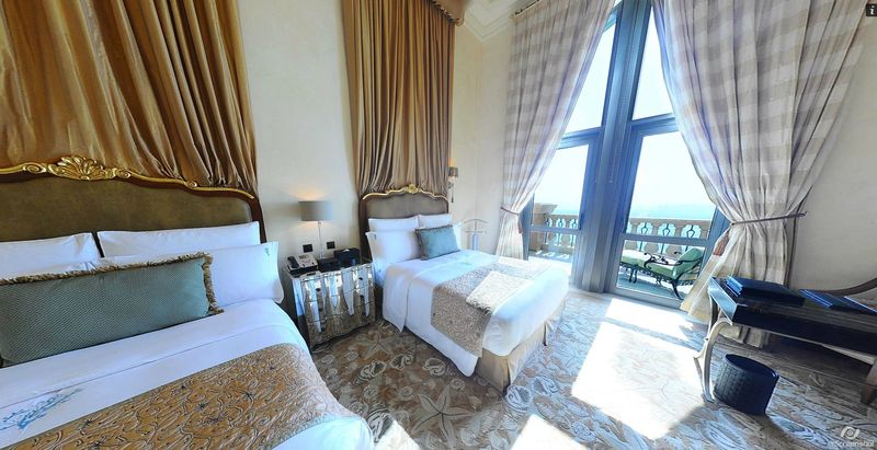 Номера расположены в Восточной и Западной башнях, с прямым видом на пляж, Пальму Джумейра и небоскребы Дубая.
