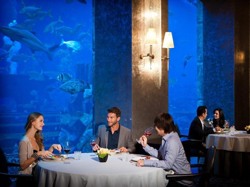 В ресторанах Атлантиса есть детское меню, в Саффроне вкусно готовят морские деликатесы, есть также прекрасный китайский ресторан.