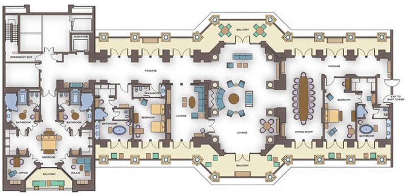 Номера расположены в угловых башнях отеля с прямым видом на Персидский залив или Пальму Джумейра.