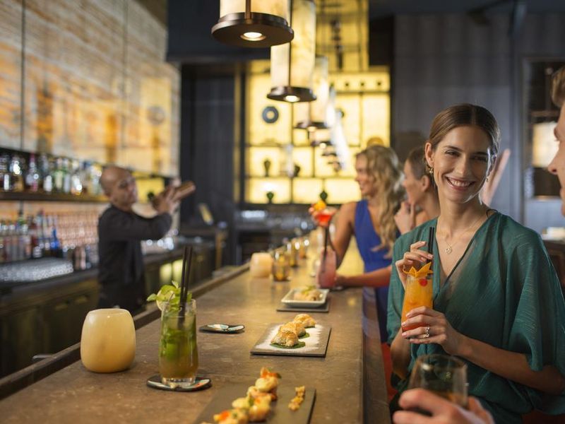 бесплатные напитки и закуски с 18:00 до 20:00 в одном из четырех ресторанов и баров: Levantine, Nasimi Beach, Seafire, Yuan