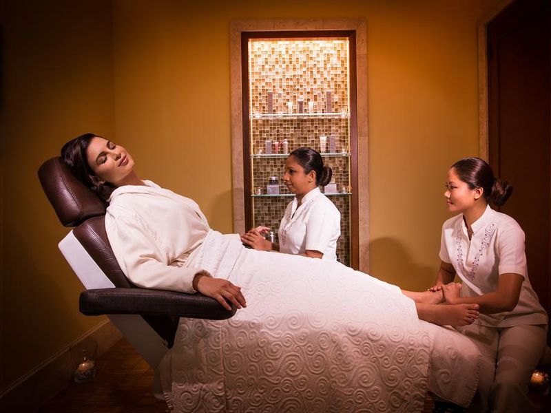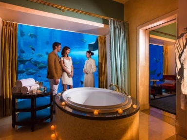 В Atlantis The Palm Jumeirah в СПА-центре есть бесплатная зона с джакузи, сауной, хамам, лаунжем для релакса, где кресла - кровати усыпаны лепестками роз, а гостям предлагаются журналы, фрукты и фруктовая вода.